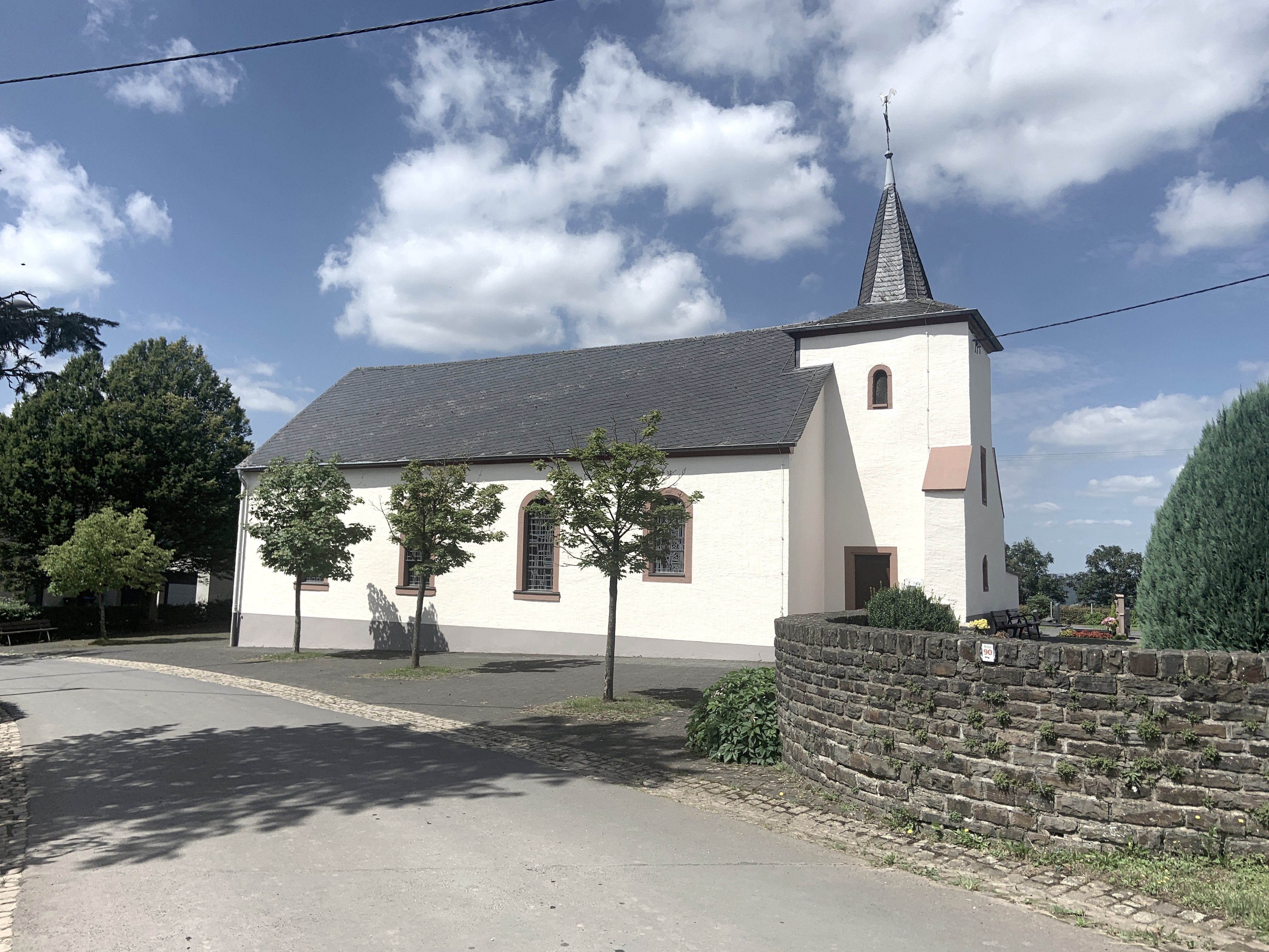 Oberpierscheid: Nach weiteren 3,5 km gelangt man nach Oberpierscheid. Die Filialkirche Oberpierscheid wurde erstmals in einer erzbischöflichen Verfügung aus dem Jahr 1408 erwähnt. Heute ist der mit dem Turm nach Osten ausgerichtete Bau ein vierachsiger Saalbau, während der ursprüngliche Kapellenbau zweischiffig, ohne Gewölbe gewesen sein soll. Heute bildet die Kirche mit dem alten Nischenkreuz sowie dem Friedhof den Dorfmittelpunkt.