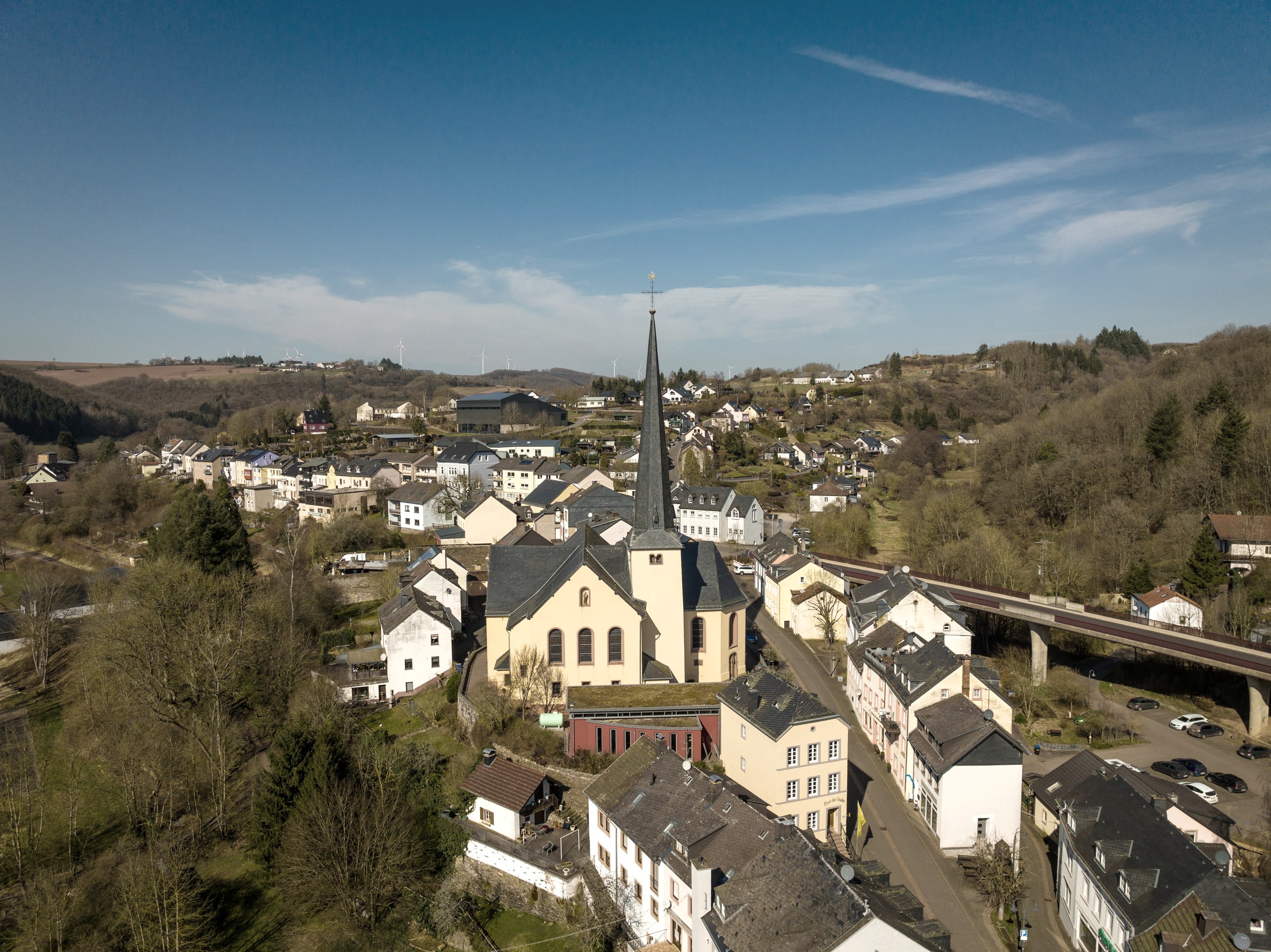 Nach einer Weile queren Sie den Mühlbach, der hier von schönen Ufern gesäumt wird. Der Rückweg führt Sie auf den gut ausgebauten Radweg, der eine neue Perspektive auf die Umgebung eröffnet. Ein besonderes Highlight ist die Überquerung der alten Eisenbahnbrücke: Von dort aus schweift der Blick noch einmal über das Prümtal, bevor Sie wieder zurück ins Dorf und zu Ihrem Ausgangspunkt am Haus des Gastes gelangen.