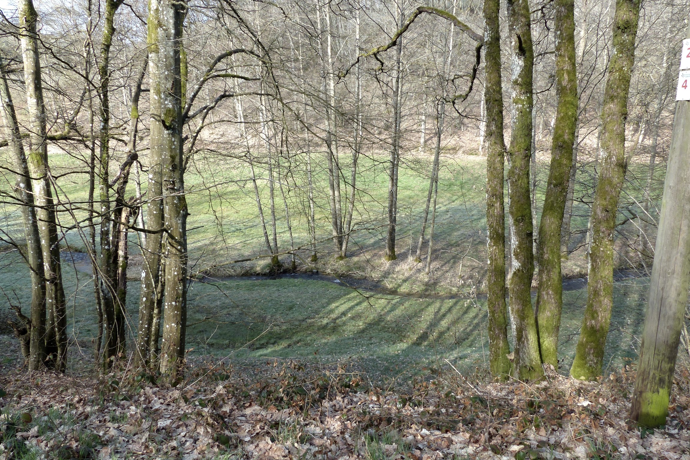 This Islek path leads from the sports field in Dahnen out of the village down into the Mühlbach valley, past the Steinkaulsmühle mill, along the stream and some fish ponds.