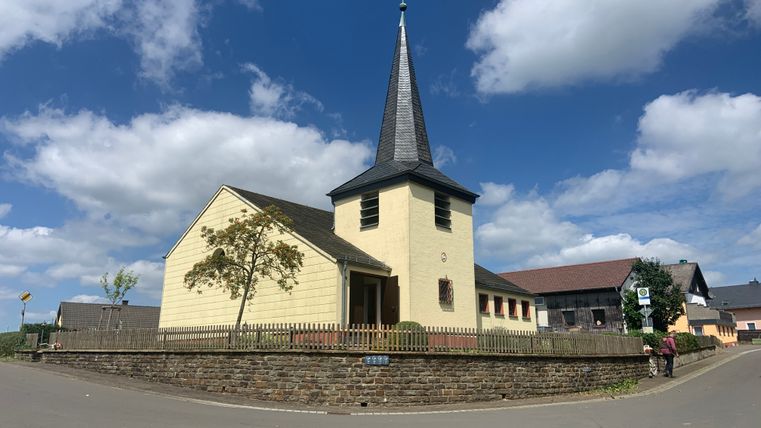 Oberpierscheid: Nach weiteren 3,5 km gelangt man nach Oberpierscheid. Die Filialkirche Oberpierscheid wurde erstmals in einer erzbischöflichen Verfügung aus dem Jahr 1408 erwähnt. Heute ist der mit dem Turm nach Osten ausgerichtete Bau ein vierachsiger Saalbau, während der ursprüngliche Kapellenbau zweischiffig, ohne Gewölbe gewesen sein soll. Heute bildet die Kirche mit dem alten Nischenkreuz sowie dem Friedhof den Dorfmittelpunkt.