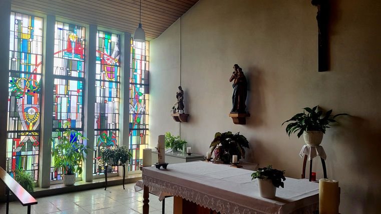 Burscheid: Nach etwa 3 km erreicht man die kleine Kapelle in Burscheid, ein ruhiges, kleines Dorf mit einer besonderen Atmosphäre der Stille und Abgeschiedenheit. Die romanische Marienkapelle, umgeben von Buchs- und Eibenhecken sowie einem Rosengarten, lädt zum Innehalten und zur Besinnung ein.Der Weg führt weiter durch offene Felder und kleine Waldstücke.