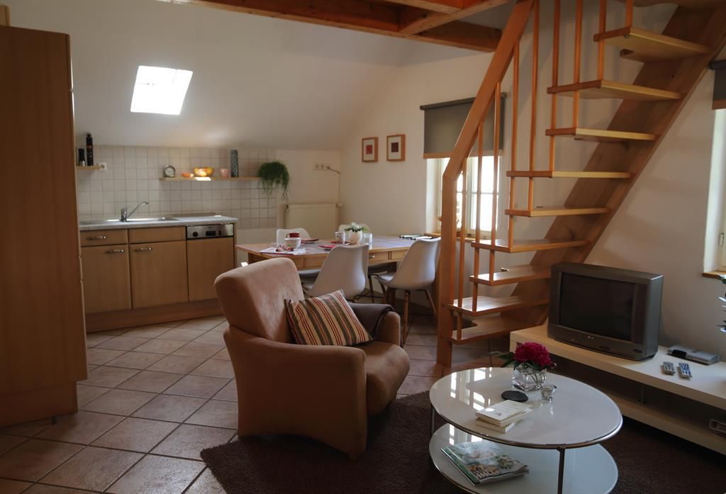 2 km von den Ferienwohnungen entfernt befindet sich der Erwerbsbauernhof der Familie Schares, auf dem die Kinder auch z.B. mithelfen oder Kühe melken können.