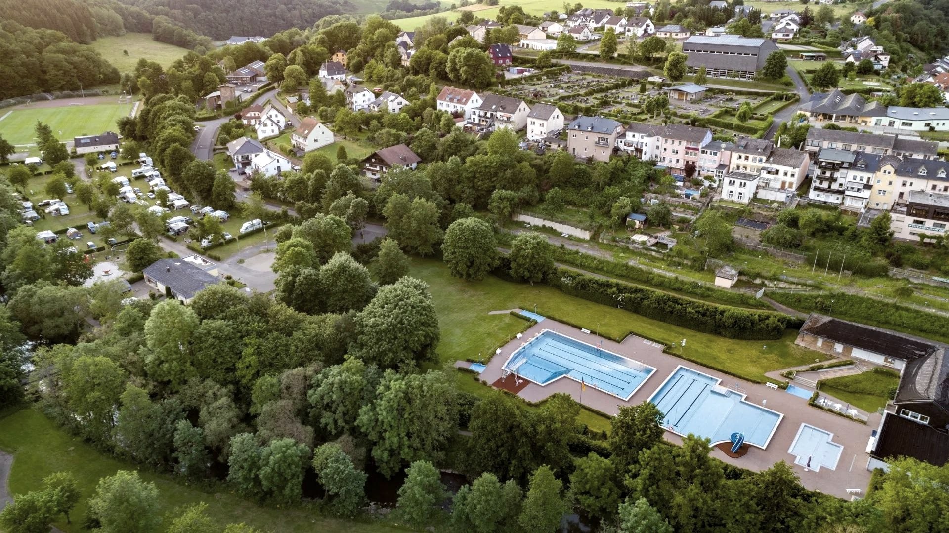 Erleben Sie urgemütliche Ferien in wunderschöner Natur im Naturpark Südeifel. Hier finden Sie Erholung pur - denn Sie sind Gast in einem der idyllischsten Ferienparks der Eifel mit Bungalows und Campingplatz. Das Freibad befindet sich direkt neben dem Ferienpark und der Eintritt ist für unsere Gäste frei.